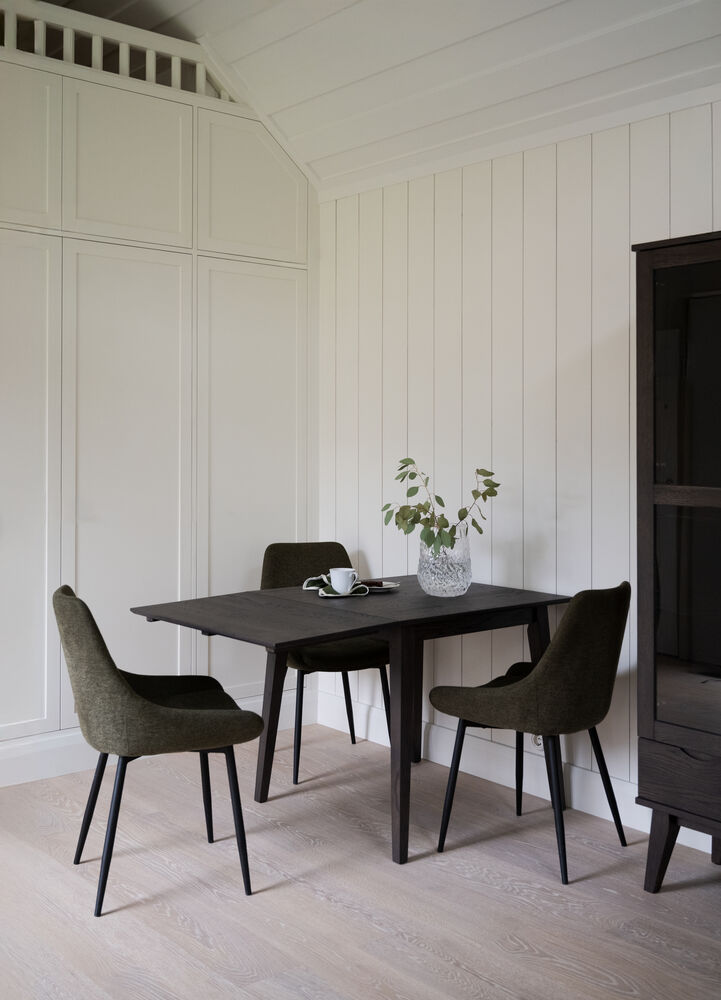 Populära Sierra stol i modern design med skön sittkomfort. Stolen finns i flera olika färger och passar perfekt i våra skandinaviska hem. Här syns den med sits i grönt polyestertyg. Tyget har hög slitagenivå och stolen har tåliga ben i svart pulverlackad metall. Sierra stol passar utmärkt runt matbordet men även som udda stol i hallen, sovrummet eller till skrivbordet. Stolen är FSC®-certifierad.