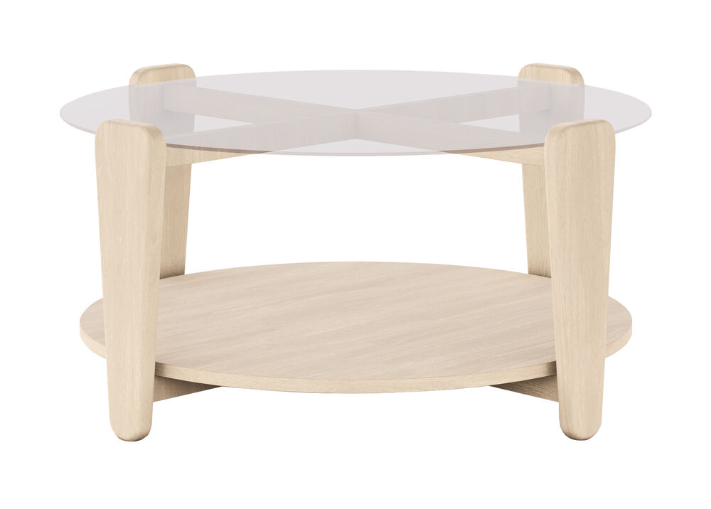 Arran soffbord Ø93 är ett stilrent soffbord kombinerat med en modern skandinavisk design. Glasskivan som möter den vitpigmenterade eken ger en snygg kontrast som inger elegans. Soffbordets rundhet skapar en mjuk känsla som passar till de flesta soffor. Arran soffbord finns i två olika storlekar, placera dem separat eller tillsammans i grupp. Finns även i brun ek.