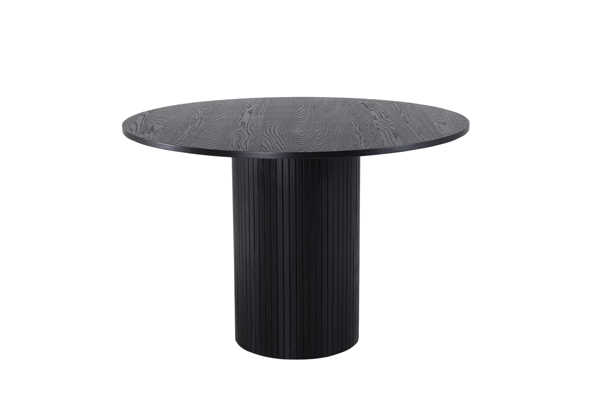 Skapa en härlig gemenskap kring vårt runda matbord Bianca i modemedveten design! Bordsskivan är tillverkad i MDF och har en cylinderformad stomme i robust utformning och ribbad design. Den genomgående svarta kulören är lika tidlös som snygg och enkel att matcha med övrig inredning. Förhöj inredningskänslan och låt tiden här bli till en av dagens höjdpunkter! Skötselråd: MDF-skivor som är målade eller lackade är känsliga för repor och skador. Var därför varsam med skivorna för att undvika detta. Ytor målade med lack med färgpigment eller målarfärg har en pigmentering som ger en ej täckande genomskinlig yta.