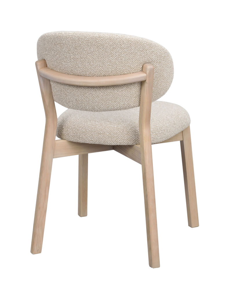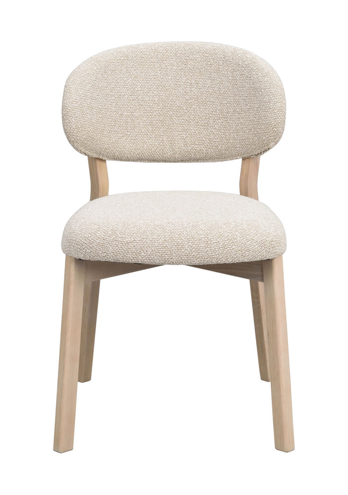 Patterson är en elegant stol i massiv vitpigmenterad ek som kombinerar skandinavisk design med varm komfort. Den kännetecknas av vackra trädetaljer, mjuka övergångar och en balans mellan rundade och raka linjer, vilket gör att den passar till många olika typer av matbord och inredningsstilar. Den tjocka textilklädda ryggbrickan och sitsen ger en generös och bekväm sittupplevelse. Tyget, med något grövre och mer livfull struktur, tillför karaktär och ett modernt uttryck.