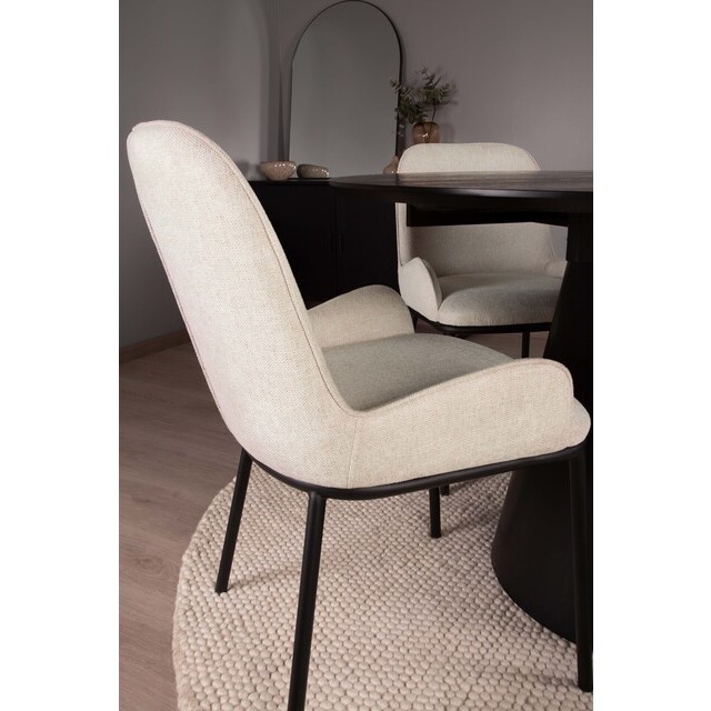Denna stol är inte bara fin att titta på, den är också väldigt bra att sitta i. Den svarta ramen runtom ger stolen det där lilla extra. Den är klädd i ett fint tyg och har svarta sandblästrade metallben. Finns även som barstol.